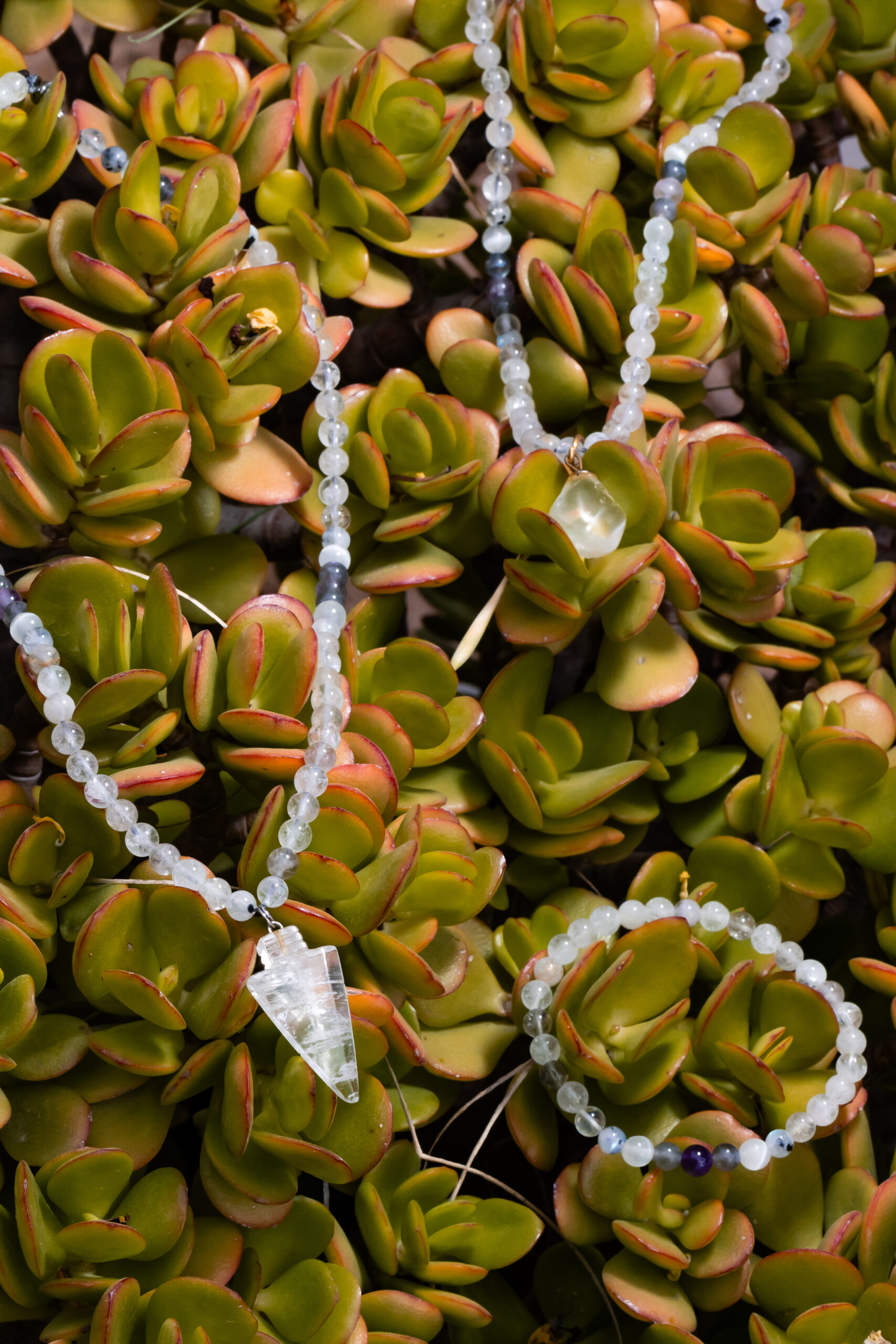 Este collar activa y armoniza el chakra corona, centro de la conexión con lo divino y la comprensión trascendente. Es un anclaje sutil para quienes meditan, canalizan, buscan la contemplación o desean recordar su unidad con el Todo. Ideal para prácticas espirituales profundas, terapeutas energéticos o simplemente para quien anhela vivir desde una conciencia más elevada y luminosa.
