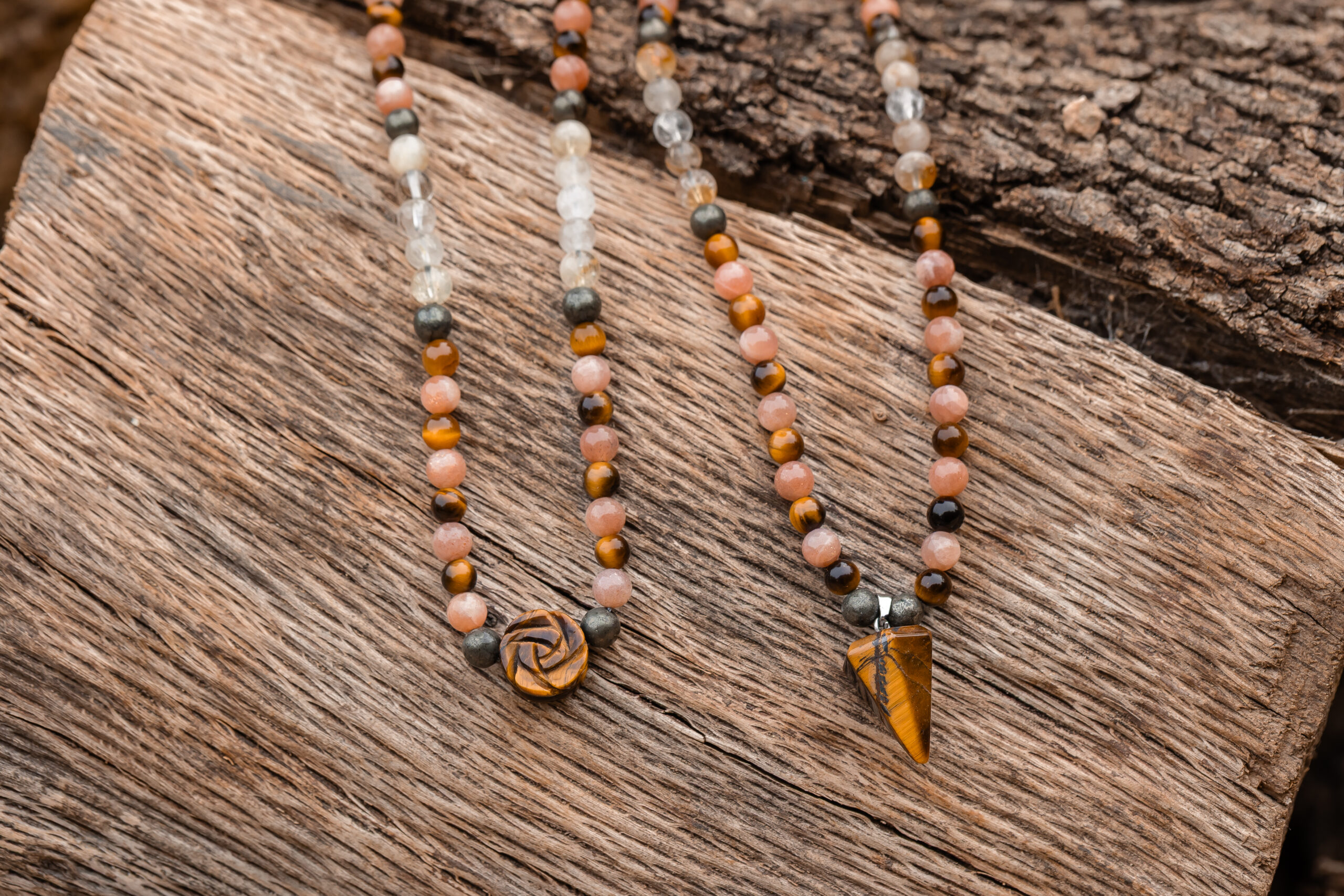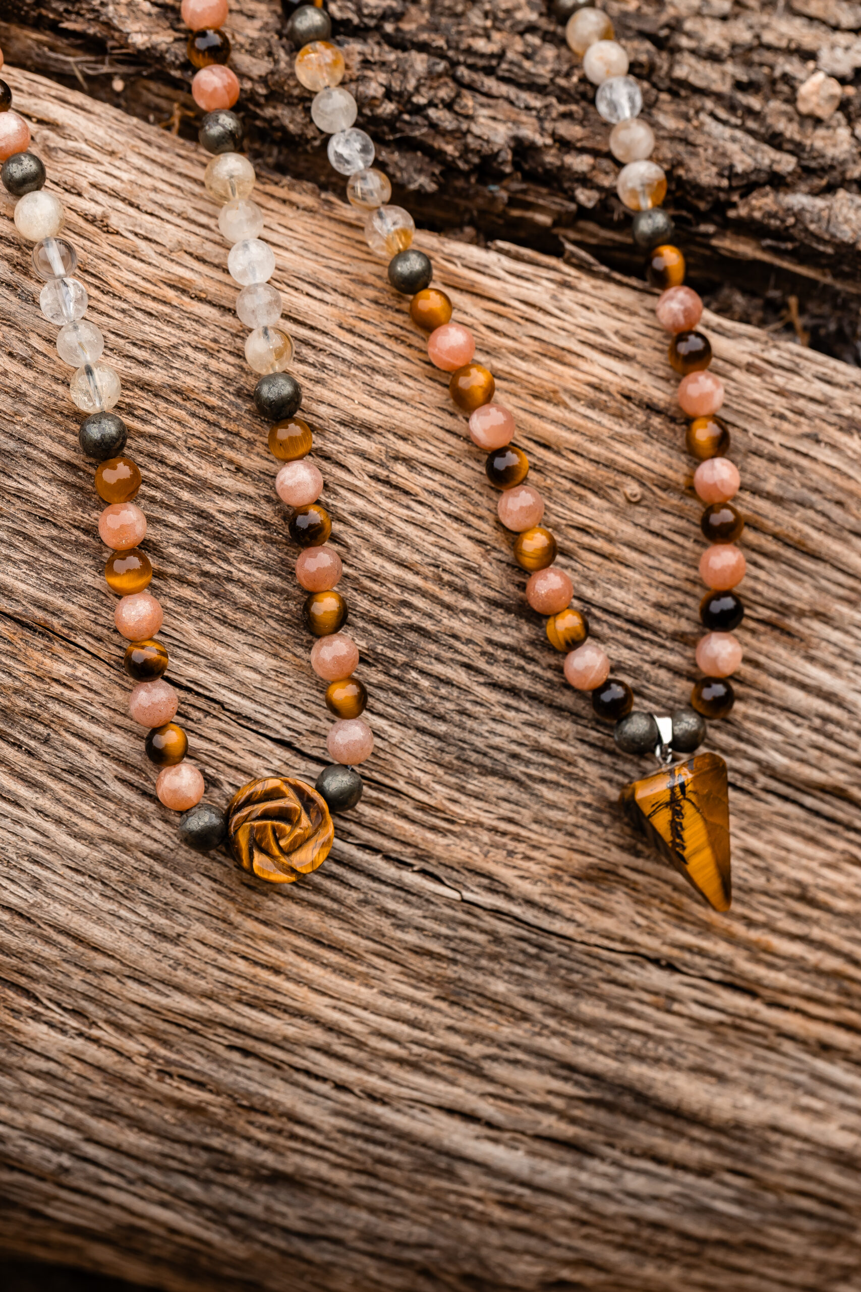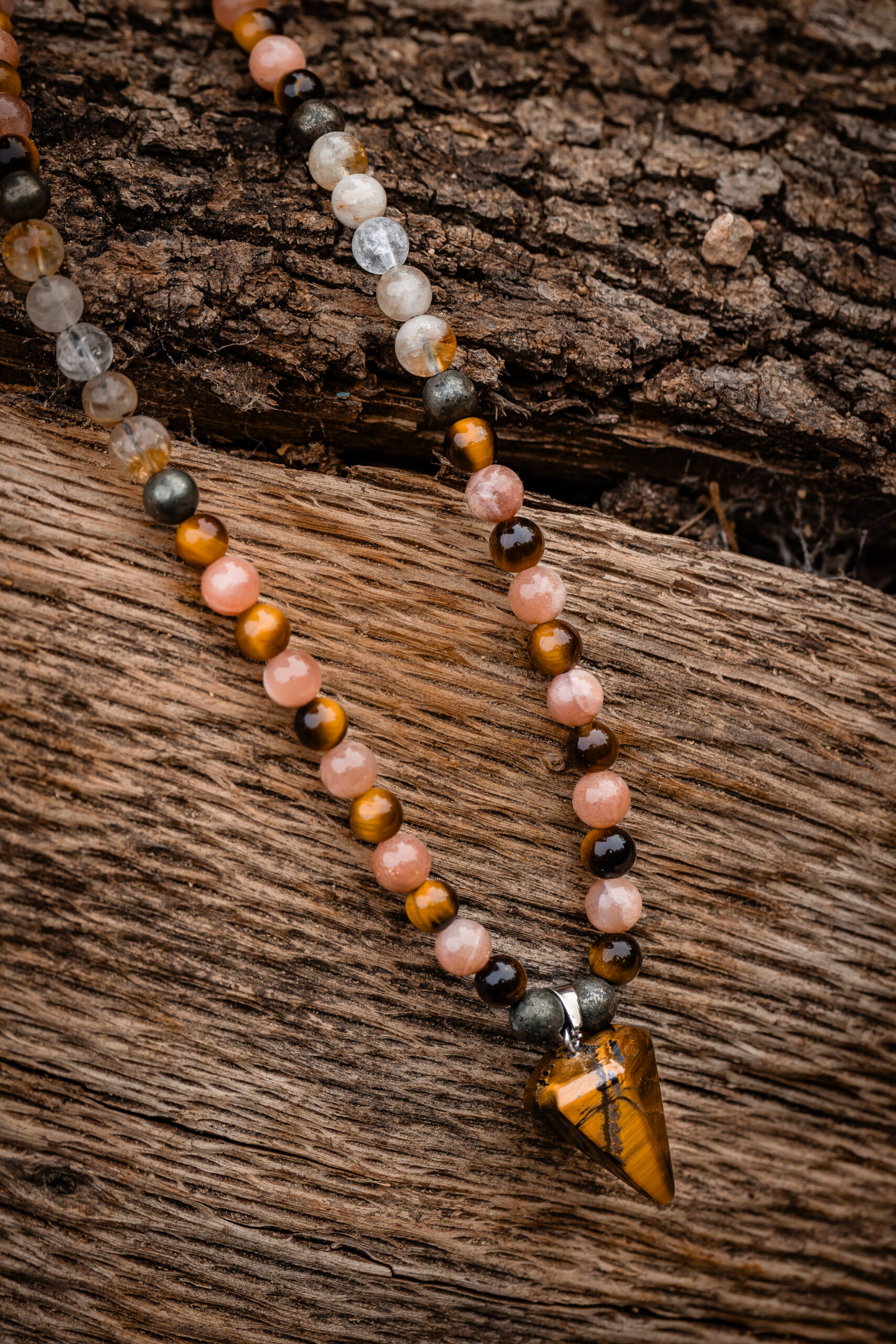 Este collar está diseñado para encender tu centro de poder y sostenerte en los momentos en que necesitas dirección y decisión. Activa el chakra del plexo solar para ayudarte a expresar tu fuerza interior, tomar decisiones con claridad y avanzar con confianza hacia tus metas. Es ideal para quienes lideran, emprenden o están reclamando su espacio y su propósito con firmeza.